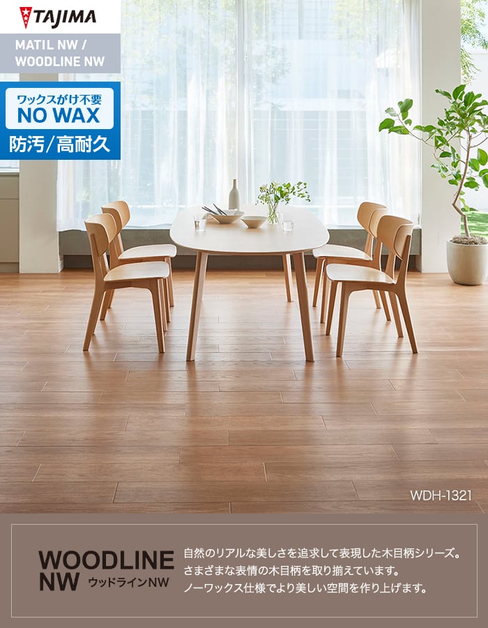 フロアタイル 木目 タジマ WOODLINE NW 150×914.4×3.0mm ノルムチェリー 22枚入