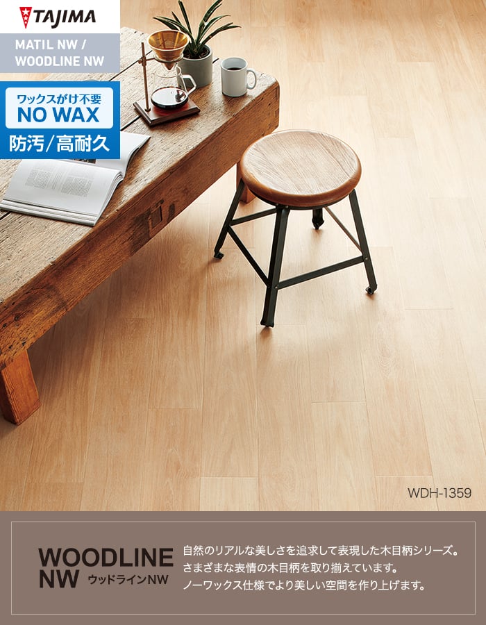 フロアタイル 木目 タジマ WOODLINE NW 150×914.4×3.0mm ドライチョーク 22枚入