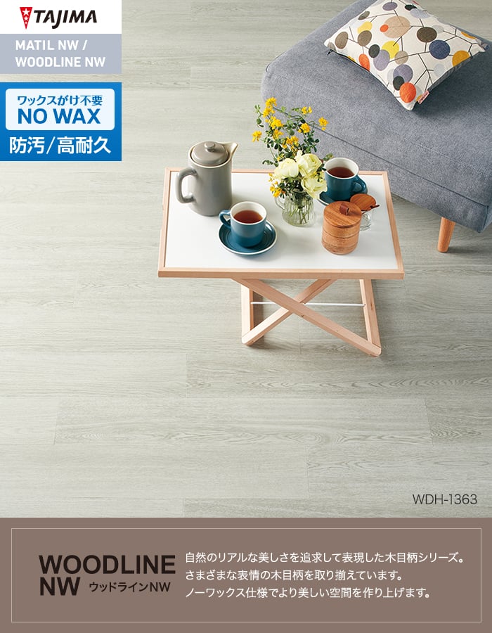 フロアタイル 木目 タジマ WOODLINE NW 150×914.4×3.0mm コローレオーク 22枚入