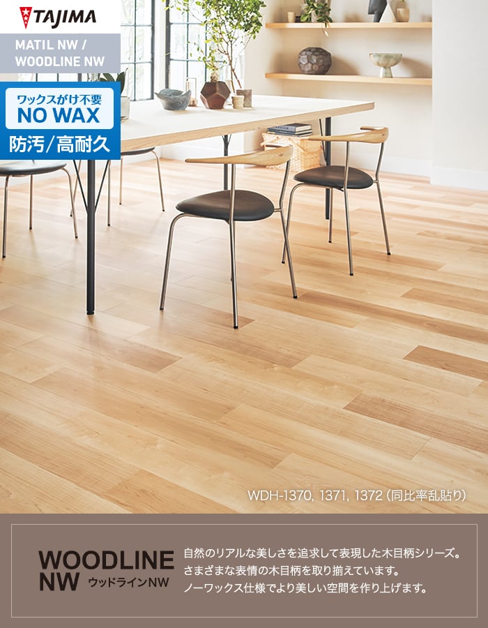 フロアタイル 木目 タジマ WOODLINE NW 150×914.4×3.0mm ハードメープル 22枚入