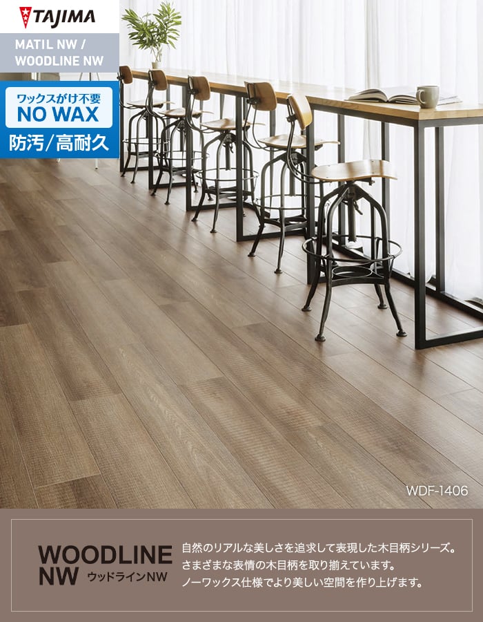 フロアタイル 木目 タジマ WOODLINE NW 180×1260×3.0mm ストレイトソーン 13枚入