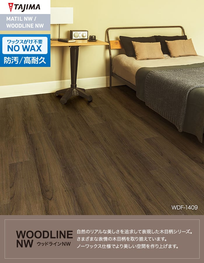 フロアタイル 木目 タジマ WOODLINE NW WDF-1408・1409 180×1260×3.0mm 13枚入