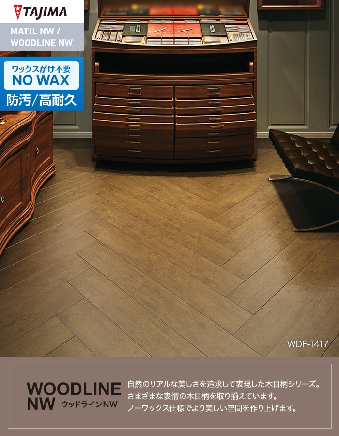 フロアタイル 木目 タジマ WOODLINE NW 180×1260×3.0mm アンティークウッド 13枚入
