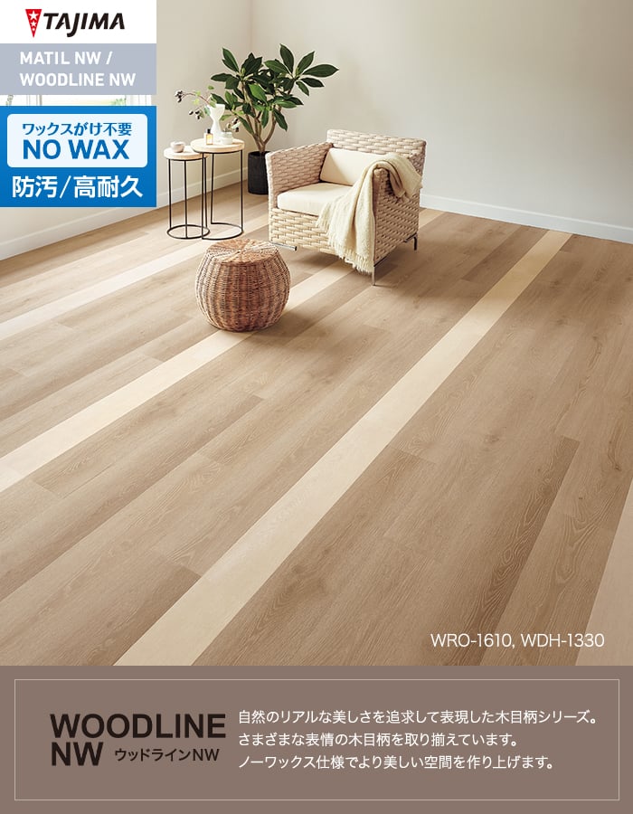 フロアタイル タジマ WOODLINE NW ROSSO WRO-1609~ 184.2×1219.2×3.0mm 14枚入