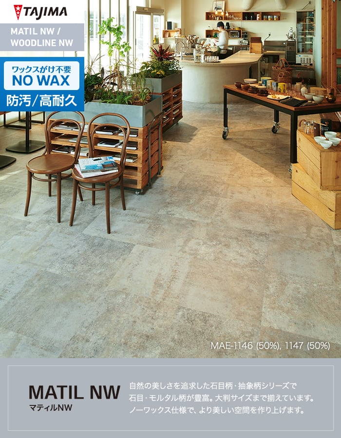 ノーワックス仕様になって、剥離洗浄時の廃液などの環境負荷を低減。