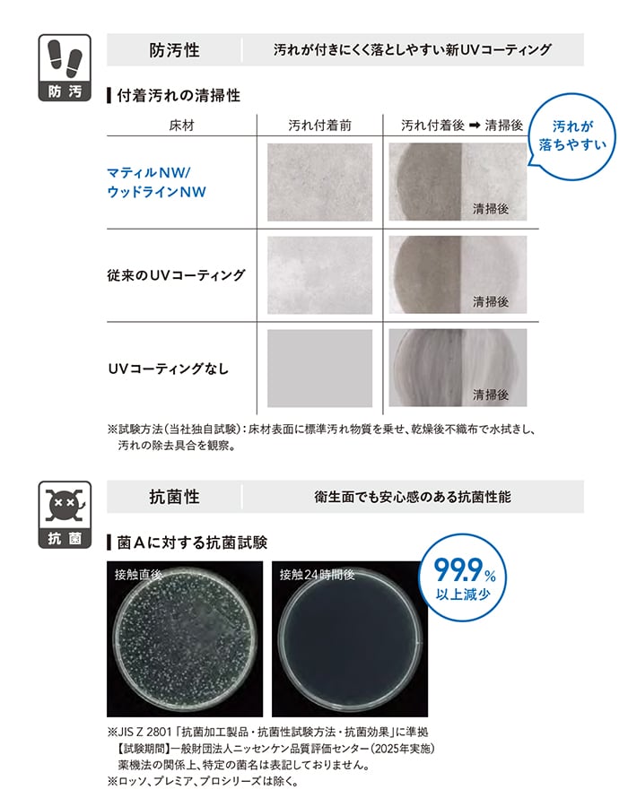 ノーワックス仕様になって、剥離洗浄時の廃液などの環境負荷を低減。