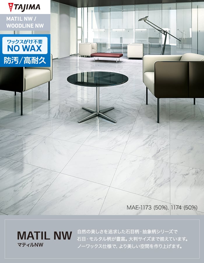 フロアタイル 大理石 タジマ MATIL NW 457.2×457.2×3.0mm アジャックス 15枚入