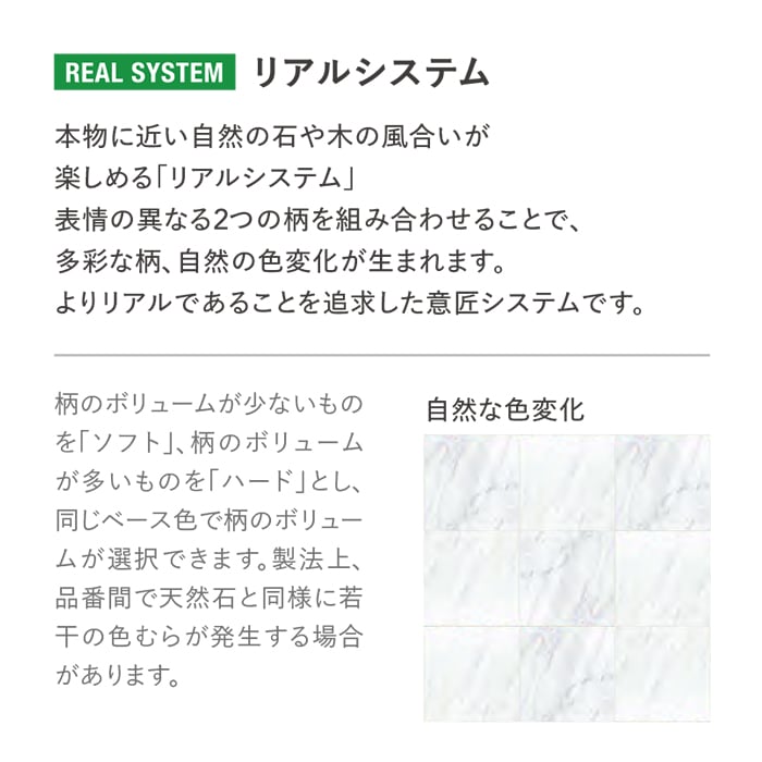 デザイン性にこだわって、自然のリアルな美しさを表現した石目柄シリーズ。高級感のある大理石調