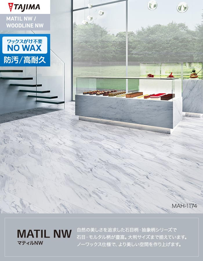 フロアタイル 大理石 タジマ MATIL NW 150×914.4×3.0mm アジャックス Hard 22枚入