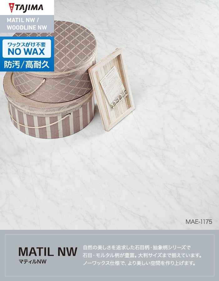 フロアタイル タジマ MATIL NW 457.2×457.2×3.0mm ブランカララ 15枚入
