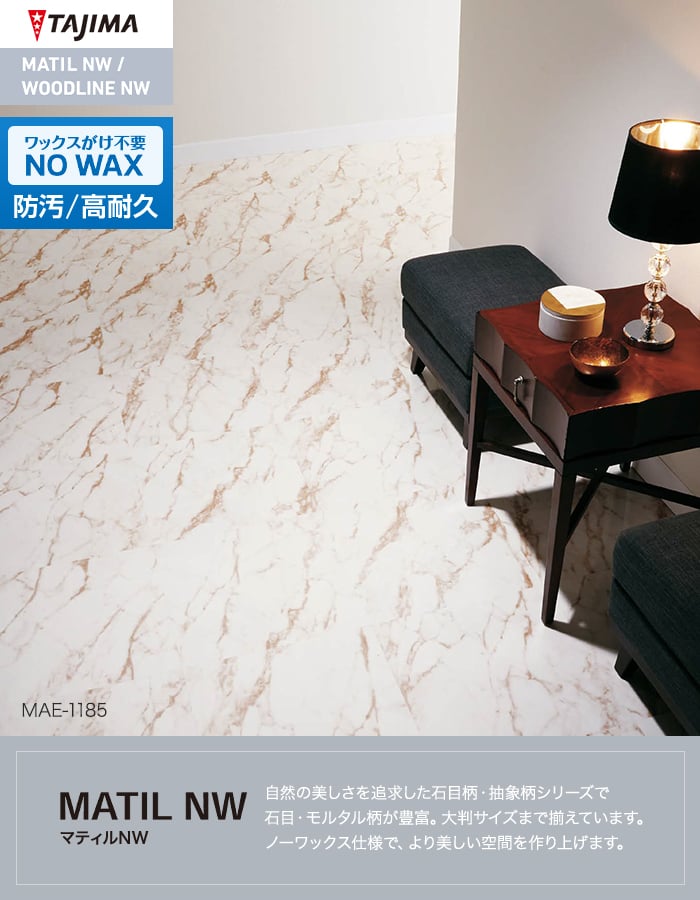 フロアタイル 大理石 タジマ MATIL NW MAE-1185・1186 457.2×457.2×3.0mm 15枚入