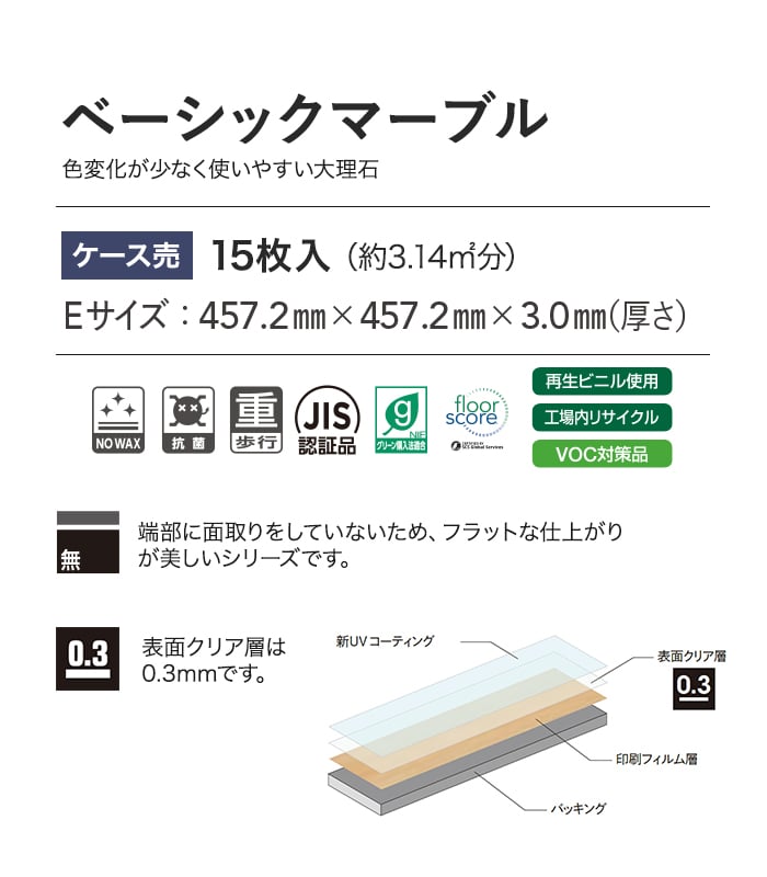 フロアタイル タジマ MATIL NW 457.2×457.2×3.0mm ベーシックマーブル 15枚入