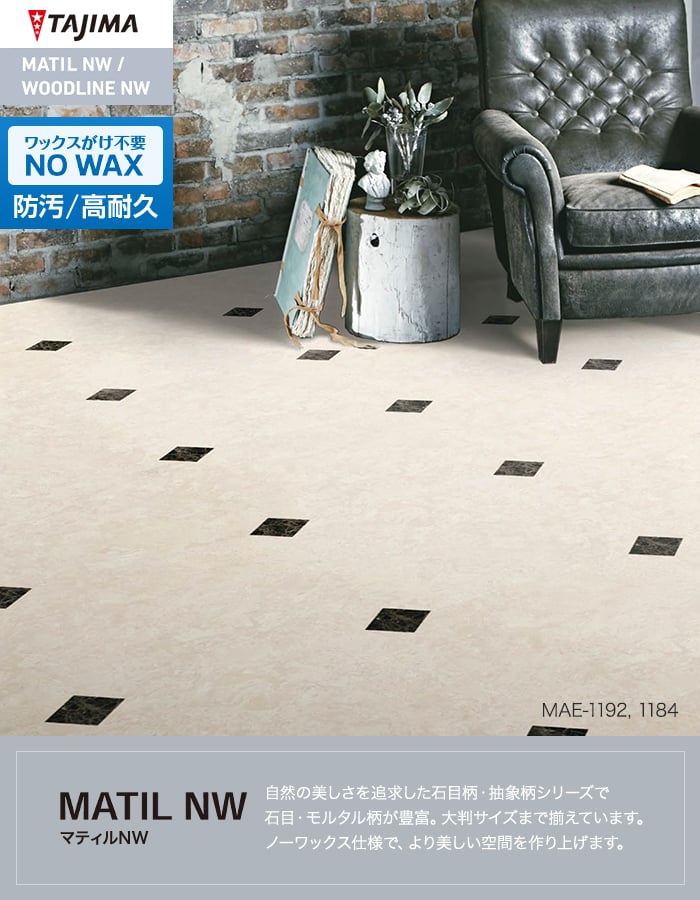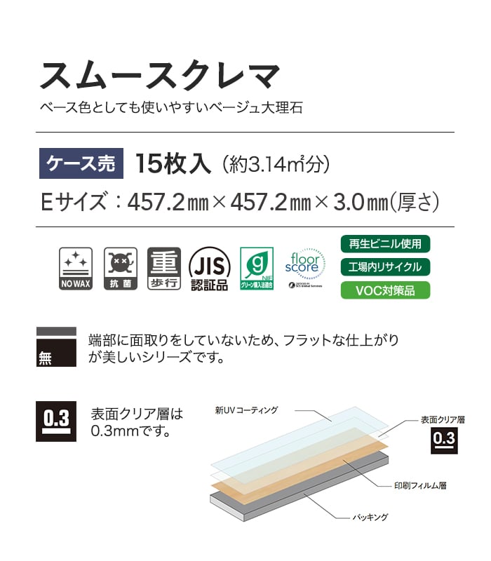 フロアタイル タジマ MATIL NW 457.2×457.2×3.0mm スムースクレマ 15枚入