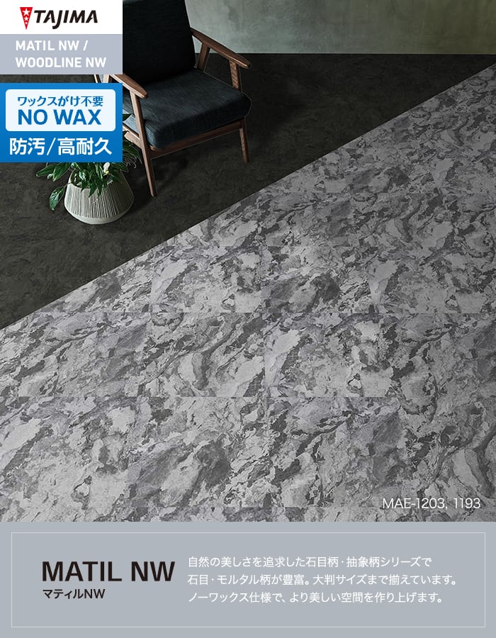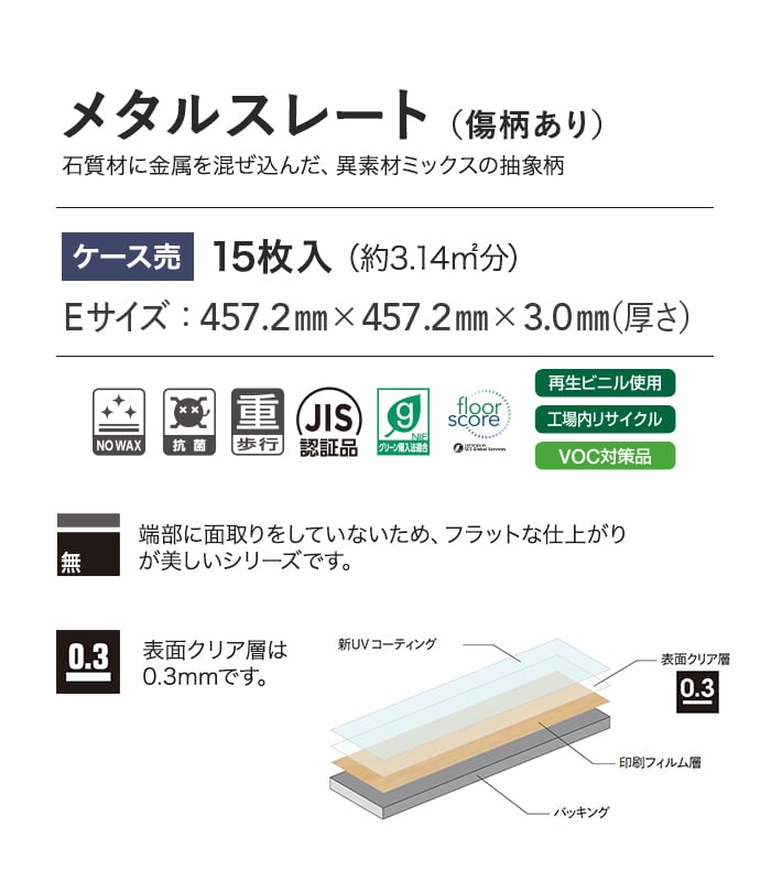 フロアタイル タジマ MATIL NW 457.2×457.2×3.0mm メタルスレート 15枚入
