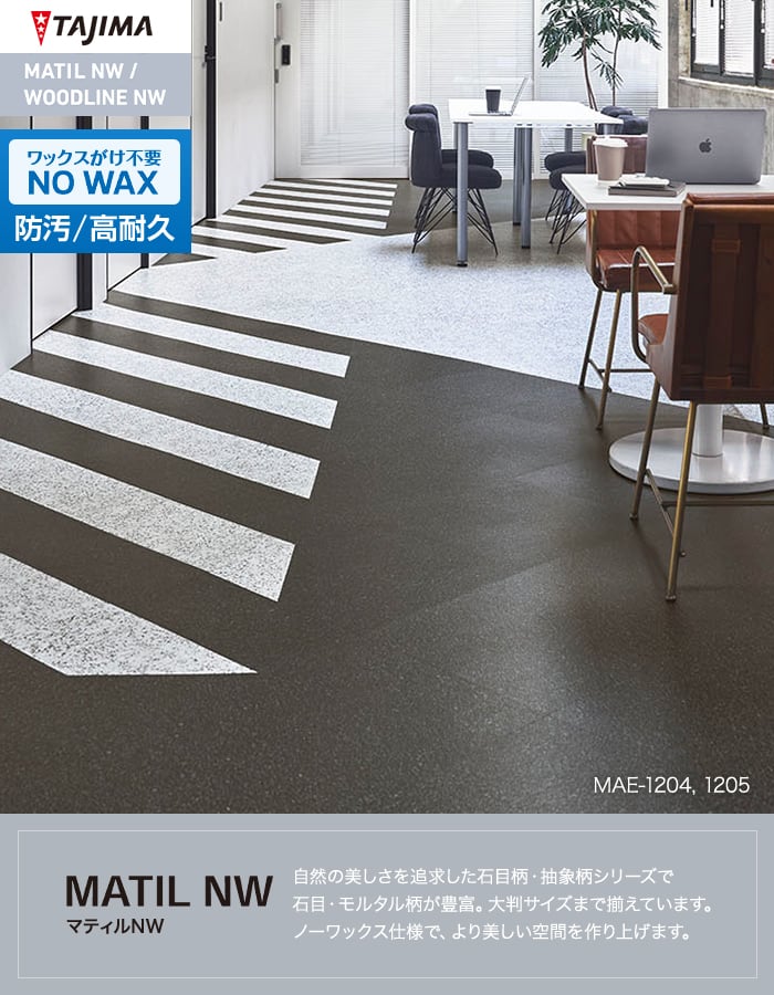 フロアタイル タジマ MATIL NW 457.2×457.2×3.0mm アスファルト 15枚入