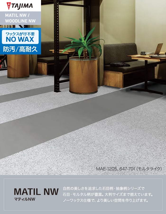 フロアタイル タジマ MATIL NW 457.2×457.2×3.0mm アスファルトホワイト 15枚入