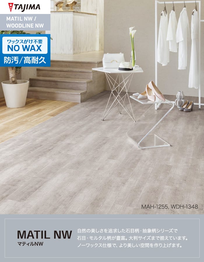 フロアタイル タジマ MATIL NW 150×914.4×3.0mm うづくりモルタル 22枚入