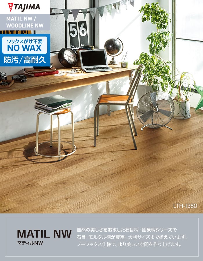 フロアタイル 木目 タジマ ウッドラインNW ライト 150×914.4×3.0mm 22枚入