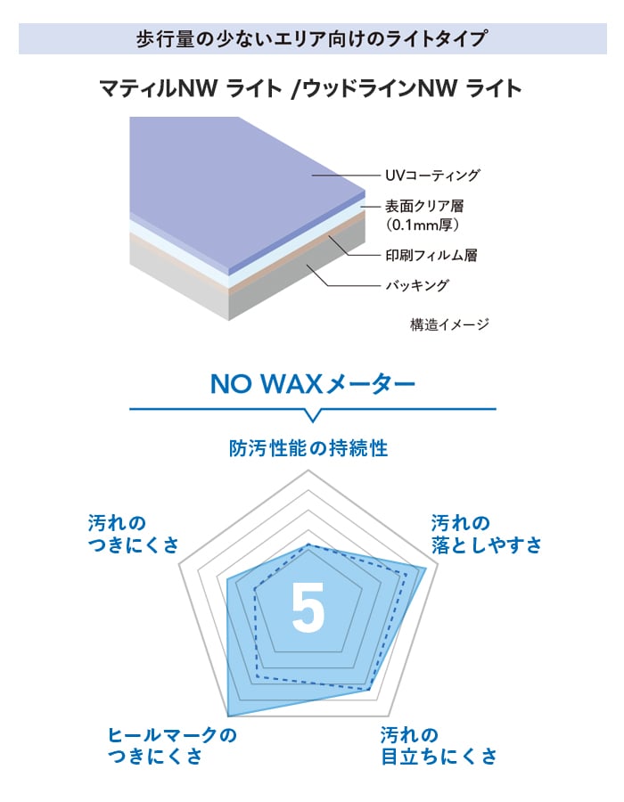 ノーワックス仕様で、剥離洗浄時の廃液などの環境負荷を低減。