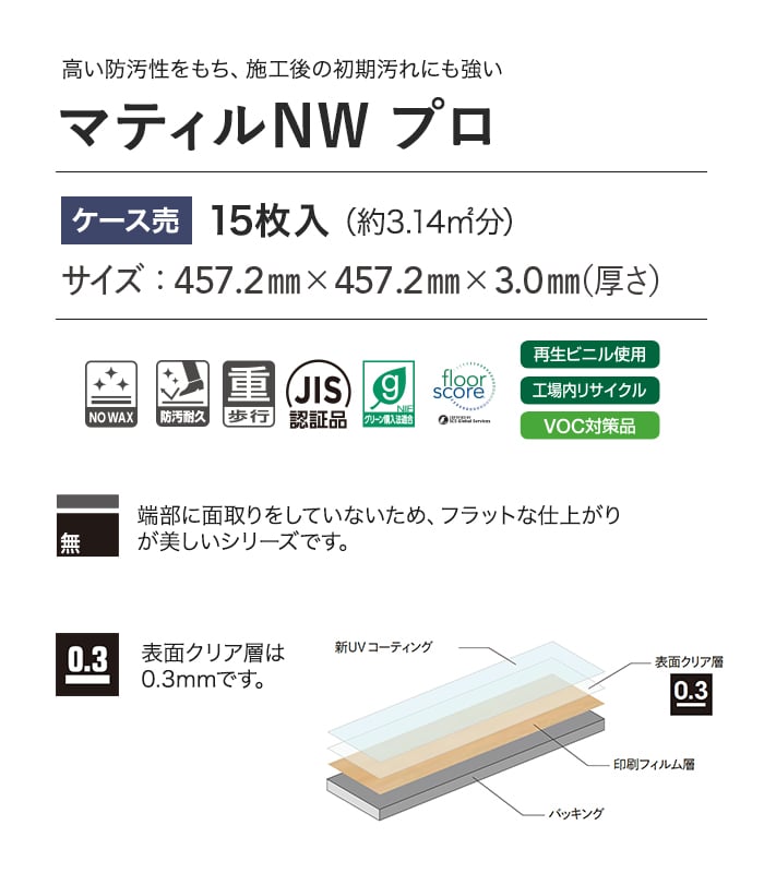 フロアタイル タジマ マティルNW プロ 457.2×457.2×3.0mm 15枚入