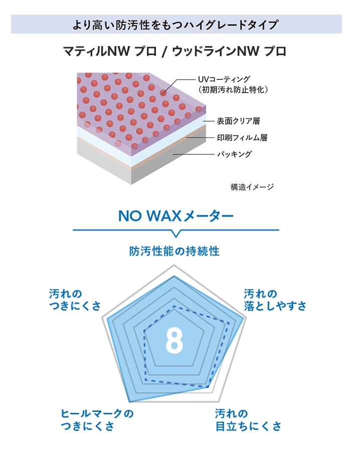 ノーワックス仕様で、剥離洗浄時の廃液などの環境負荷を低減。