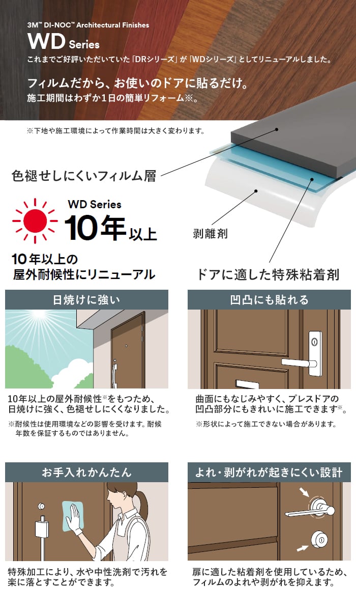 ダイノックシート 玄関ドア 3M ダイノックフィルム WDシリーズ 淡色