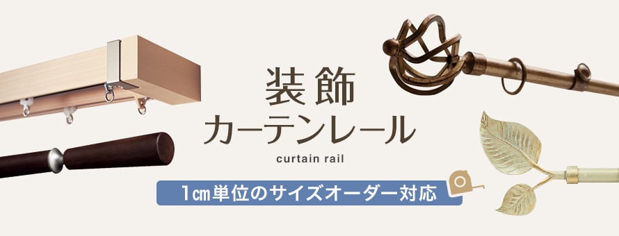 窓辺をインテリアの一部として演出する「装飾カーテンレール」。木目調やアイアン調、アンティーク調など、デザイン性に優れたレールでお部屋の雰囲気をガラリと変えられます。キャップのデザインにもこだわり、細部までおしゃれにコーディネートしたい方におすすめです。1cm単位のサイズオーダーにも対応。