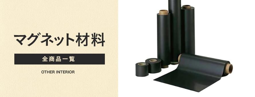 様々なものを磁力化できるマグネット材料の商品一覧ページです。裏面粘着剤付きのマグネシートや、細長いマグネテープ、幅広いカラーバリエーションのマグネカラーシートなど幅広いマグネット材料を取り揃えております。