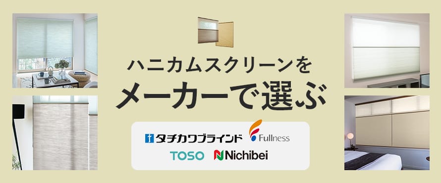 ニチベイ、TOSO、タチカワブラインドなどの国内有名メーカーから、お手頃価格のフルネスまで、各社のハニカムスクリーンを一挙にご紹介。メーカーごとの特徴や独自の機能を比較して、お部屋にぴったりの一台を選べます。断熱性や遮光性に優れた高機能タイプも豊富にラインナップ。
