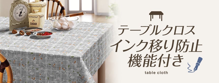 印刷物のインク移りを防ぐ特殊加工を施した、ビニール製のテーブルクロスです。雑誌や新聞を置いてもインクが付着しにくく、大切なテーブルを汚れや傷から守ります。ダイニングテーブルに最適です。