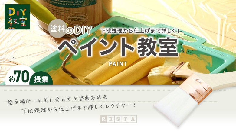 ペイントはDIYの基本中の基本!ペンキをはじめ、ニス・ステイン・ワックス・オイルなどの木部塗料、遮熱・防水・防虫などの機能性塗料の特徴を詳しくご紹介。また、塗料の選びかた、塗料の塗りかた、色の選びかたなど、ペイント教室を受講すればDIYペイントの全てがわかります。さあ、あなたもハケとペンキをもってDIYを始めてみましょう!