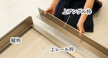 上アングル枠を上レール枠に載せるように組合わせます。