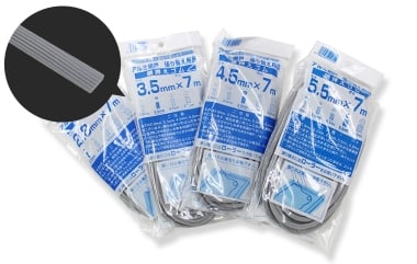 網戸張替えで網を固定する役割をもつ「網押さえゴム」。太さを4タイプご用意しました。今ある網戸のサイズに合うゴムをお選び下さい。※現在お使いの網戸の太さをご確認の上、同じ太さか少し太目をお選びください。