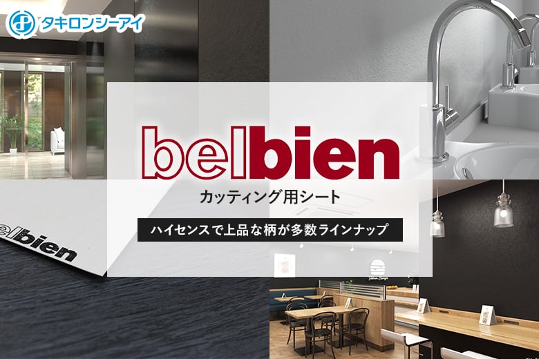 タキロンシーアイのカッティング用シート「ベルビアン」は、シックで繊細な柄が多く、大人の空間づくりにおすすめ!また、天然素材をしのぐ木目柄の質感も人気で、超耐候性の屋外貼り対応商品もあります。