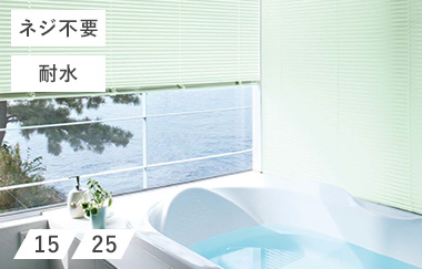 スラットからコード穴をなくすことで、遮蔽性を高めたアルミブラインド。耐水機能も持っているため、外からの視線が気になる浴室にオススメ!