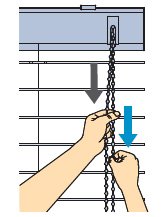 操作チェーンを少し引くとスラットの角度が調整できます。操作チェーンの反対側を引くと、スラットが裏面に回転します。