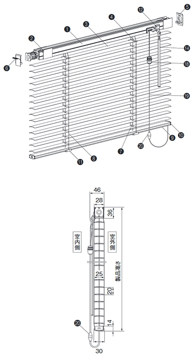 | 9. ボトムレール* | アルミ押出し形材 | スラットカラーと同色または同系色 |