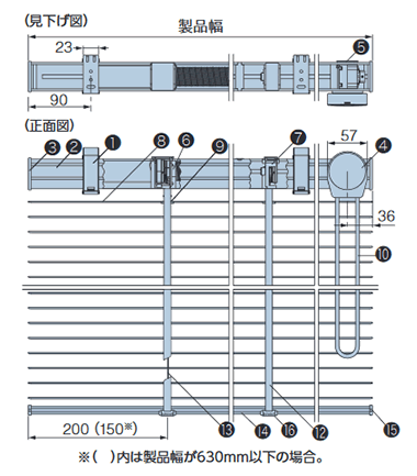 製品幅 mm↓ | 昇降コード | ラダーコード ラダーテープ |