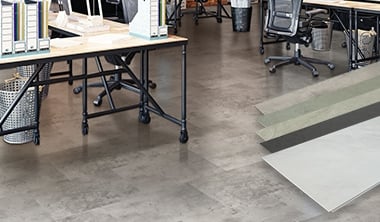 グレーのカーテンには同系色の床材を使用することで、空間に統一感を持たせることができます。特にコンクリート調のフロアタイルは、クールで都会的な印象を演出することができます。
