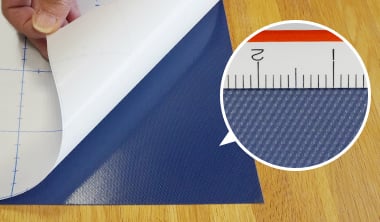 裏には5~10cmで格子状の線(ガイドライン)があり、剥離紙が貼り付けられています。1cmごとに目盛りが付いた商品もあります。