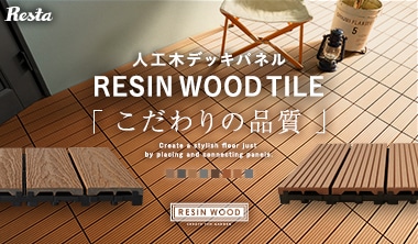 RESIN WOOD TILEは、腐りにくく、色褪せにも強い人工木材を使用した高品質ウッドデッキパネルです。表面の美しいリブ加工デザインとステンレスビスで固定された耐久性・安定性に優れたベース材が特長。1枚単位で購入でき、ケース売りはさらにお得な送料無料!