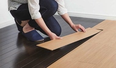 吸着フローリングは、裏面の吸着シートが床にしっかり貼りついてくれるので、置くだけという簡単施工にも関わらず、しっかり床と密着してくれます。貼り直し可能なので失敗しても大丈夫。接着剤不要なので、賃貸などにお住まいの方で、既存の床を傷つけたり汚したりしたくないという方にもオススメです。DIYでの施工も十分に可能です。
