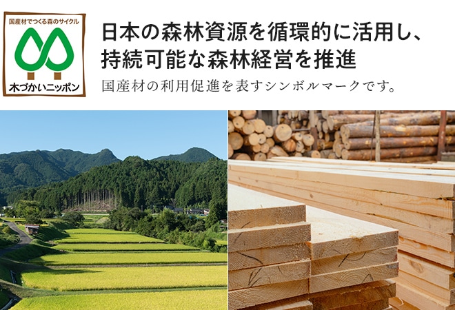 このマークは、単に木材を使っているというだけでなく、「植える → 育てる → 伐る → 使う → 活かす」という森林資源の健全な循環=“木づかいサイクル”を意識した製品であることを示します。