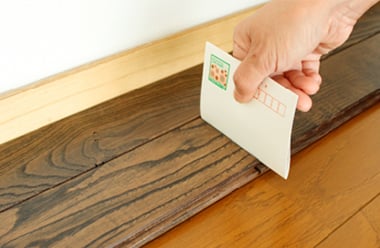 はがきや名刺などを挟みながら施工することで適切な隙間を開けることができます。