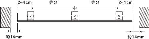 - ブラケットはヘッドボックスの両端から2~4cmの位置に取付けて下さい。3個の場合はほぼ等間隔になるように取付けて下さい。