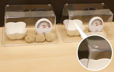 15分後透明容器が全体的に曇り、湿度計の針はどちらも95%を指しています。