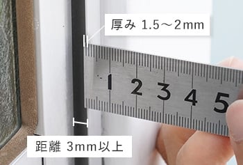縦ツバの厚みが1.5~2mmであることをご確認ください。また、窓から縦ツバまで3mm以上距離があることを確認してください。