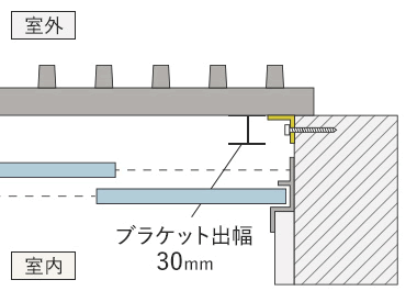 ブラケットの出幅は30mmのみとなります。取付位置を決める際は、ブラケットが開口に納まるかどうかも考慮してください。
