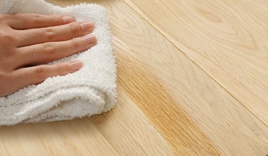 塗膜系塗装は、汚れやキズ、水分に比較的耐性があるので、通常の複合フローリングと同様にお手入れが可能ですが、浸透系塗装の場合は、少し注意が必要になります。