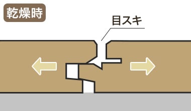天然木は、空気中の湿気を吸放出する働きがあります。これによって、無垢フローリングのメリットである調湿機能を実現します。その反面、湿気を吸放出することによって、膨張・収縮をするため、反りや突き上げ、目スキが発生します。